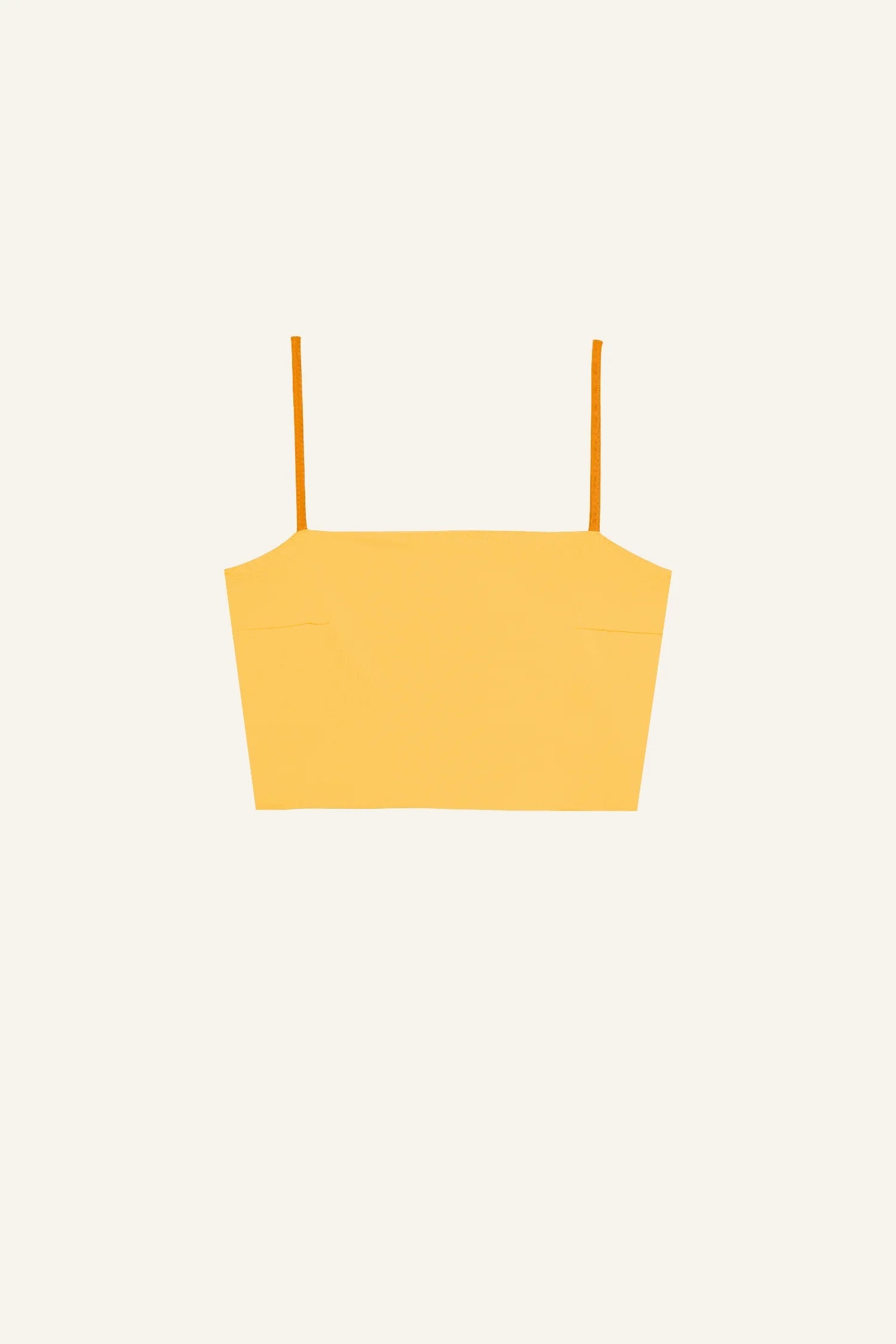 Discover our EASY TOP LONG in a new, vibrant yellow. The longer version of our minimalist, timeless EASY TOP offers extra support thanks to its longer crop-top length. The elastic, delicate straps rest softly on your shoulders for all-day comfort. Perfect for swimming or as a sports bra for yoga, this top is as versatile as it is stylish. Pair it with any of our matching bikini bottoms or wear it as an everyday summer top for a look that's uniquely yours.